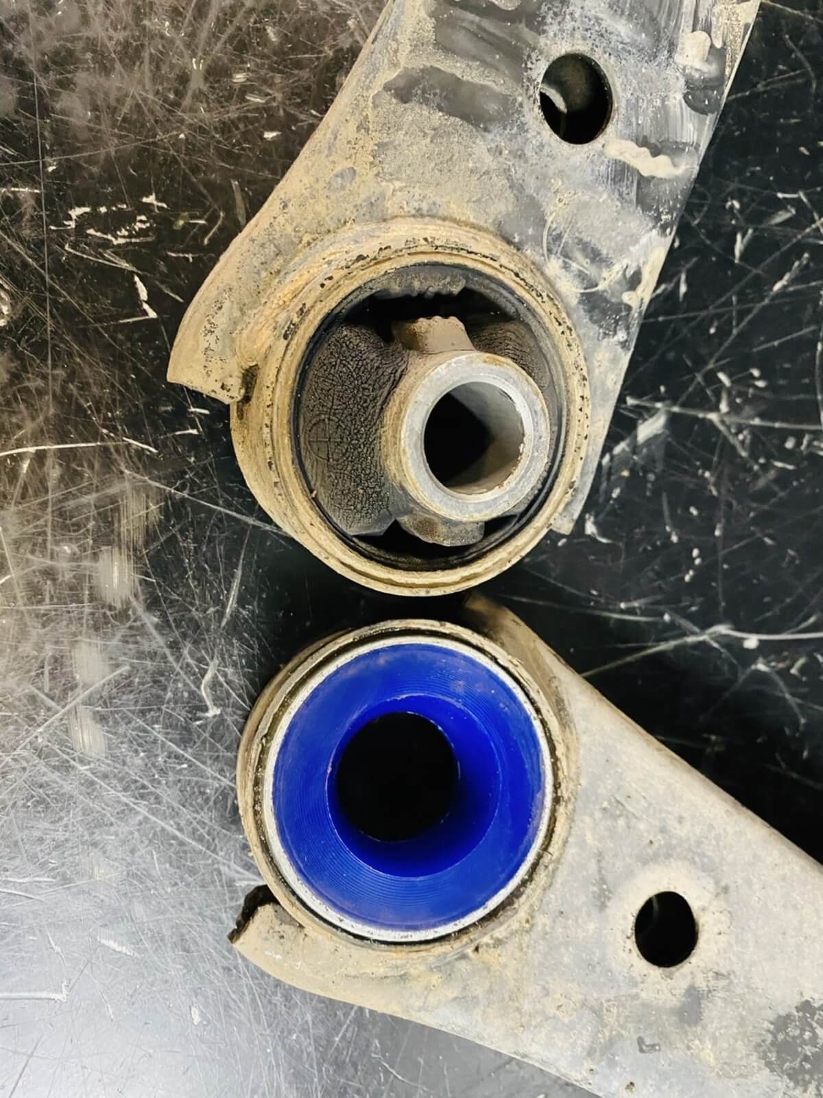 Pictured below are the worn out bushings we are replacing next to the new Subaru replacement, however we have a better option for you than just doing the same thing over again. At All Wheel Drive Auto we continue to look for options for our customers to get more use out of their Subaru.